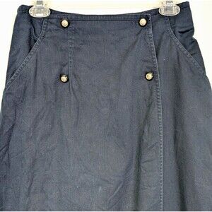 Vintage Nipon Studio Long Wrap Pencil Skirt Navy Blue Nautical Sailor 100% Cotton Size 8 is pre-owned condition. Refer to the pictures and description for item specifics. Please note we do not know the history of each item and do our best to provide you with as many details as we can when necessary.