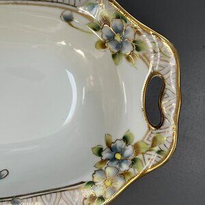 Vintage Nippon Hand Painted Porcelain Celery Dish Gilded Gilt Gold Japan Floral