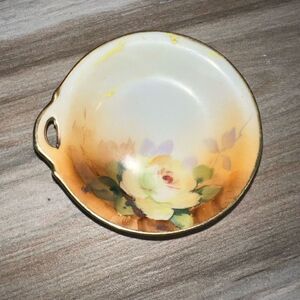 Vintage Nippon Hand Painted Handled Dish with Gold Trim Jewerly or candy trinket