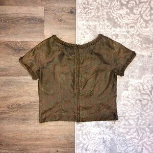 Size Unknown. This top is in excellent vintage condition! Missing one side of the clasp but not necessary or an easy fix. Also since it was handmade the zipper is a little crooked.