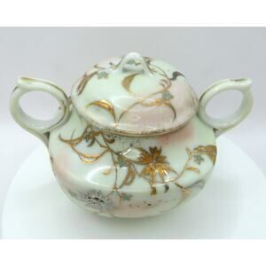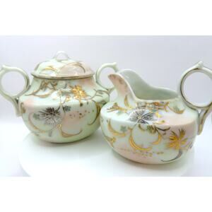 Vintage Nippon Style Moriage Creamer & Sugar Bowl Set Hand Painted Gold Floral