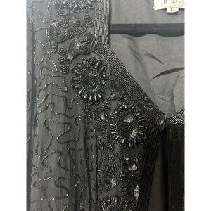 Vintage Nite Line Womens Black Beaded Outerwear Cardigan Jacket Size Large