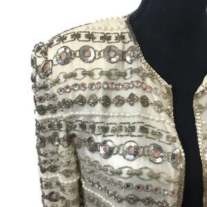 Vintage Niteline 100% Silk Beaded, Sequin Rhinestone Ivory Jacket Medium