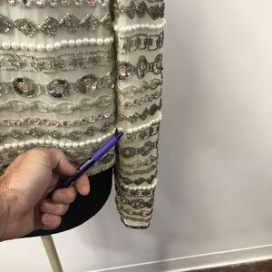 Flaws: There are areas on the jacket where the beads or sequins are missing. See