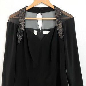 Vintage Niteline Black Beaded Collar V-Neck Sheer Silk Sheath Dress Formal 12