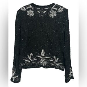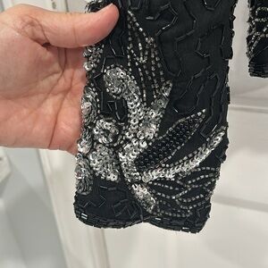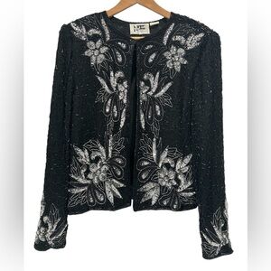 Vintage Niteline Black Silver Silk Sequined Beaded Evening Formal Jacket