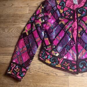 Vintage Niteline Sequin Blazer Silk Jacket Pink Party Evening Glam Womens Medium