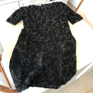 Vintage, Niteline, 80s, Dynasty, 100% Silk, Lined, Beaded, Slight Shoulder Pads, Swirl Sequined Design, Little Black Dress, LBD, Women’s Size 10, Short Sleeve, Formal Event. I have put several hand sewn stitches under both sleeves where I saw the seam had become a bit loose. Please refer to photos where I’m pointing to see the hand mending. The hand mending is not visible when wearing the dress. This dress is in good used condition.