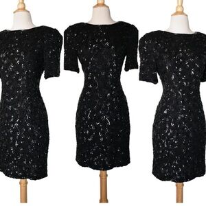 Vintage Niteline Silk Beaded Sequins Black Dress Women’s 10 Short Sleeve 80s 90s