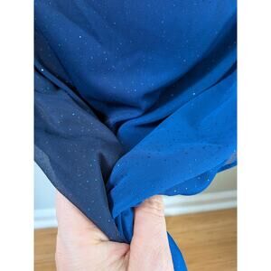 Vintage Nites Prom Dress Maxi Gown 12 Blue Ombre Y2K Fairy Shoulder Ruffle Glam