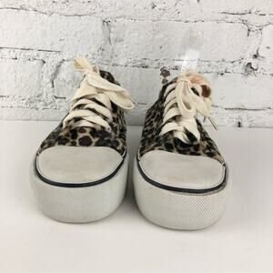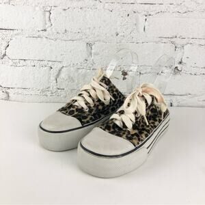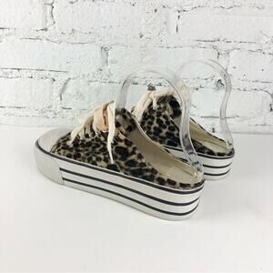 Vintage 90’s furry animal print platform tie wild slide sneakers. In a women’s size 6. In excellent vintage condition. Shoestrings stained.
