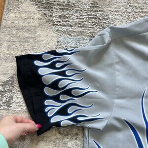 Vintage No Boundaries Blue Flames Button Up Shirt Black Mens Large L Y2K 90s