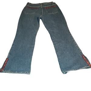Vintage No Boundaries Size 15 (32x30) Cotton Split Flare Jeans Aztec Red Boho