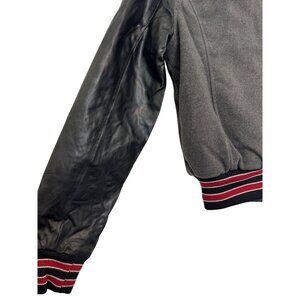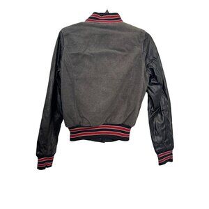 Vintage No Boundaries Womens Varsity Jacket Size S Gray/Red Black Faux Leather S