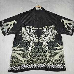 Vintage No Boundaries Y2K Button Down Shirt Mens L Dragon Print Black Grunge