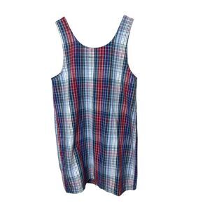 Vintage No Excuses 90s Y2K Jumper Dress Size L Red Blue Plaid. Great condition. Buttons down the front. Front pockets