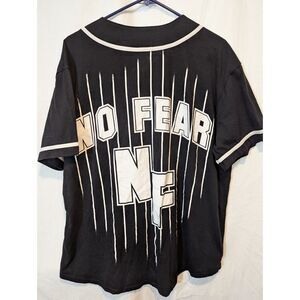Vintage No Fear Baseball Jersey XL Black Pinstripe Graphic Button Shirt