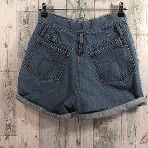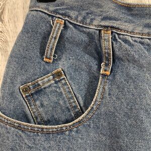 Medium blue washed denim, 5 pockets, zipper and button closure, no material or size tag, PLEASE SEE MEASUREMENTS,colors may vary due to lighting, EUC, Size: 24 ?