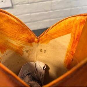These are vintage boots in good condition. They were stained, I dyed them a darker color so now they have a burnished exaggerated vintage look.