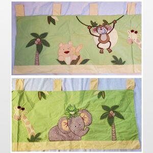 Nojo Crown Crafts Infant Products, Inc. adorable safari baby animals green & yellow kids 2 piece bundle. Includes a tab window valance & a crib bed skirt for children’s room