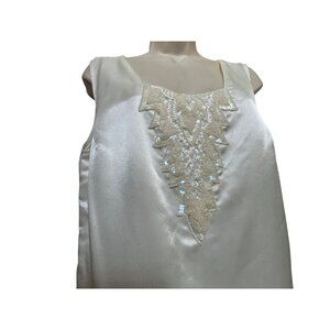 A sophisticated vintage ensemble featuring a beaded jacket, shell top, and a matching skirt. Ideal for adding timeless elegance to your wardrobe.