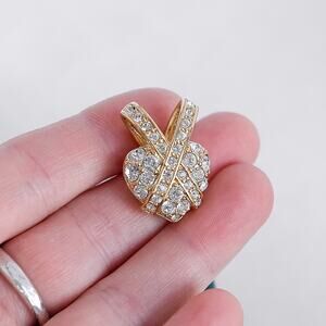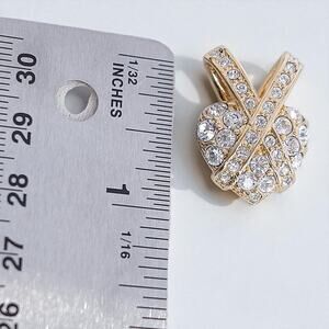 Gorgeous vintage Nolan Miller slide heart pendant with criss cross design and sparkling rhinestone crystals!