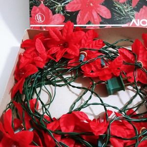 Vintage Noma Midget Lite Silk Poinsettia Set 20 Lights 34ft (hsu)