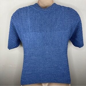 Vintage Nomadic Traders Blue Mohair Wool Blend Short Sleeve Knit Sweater XL