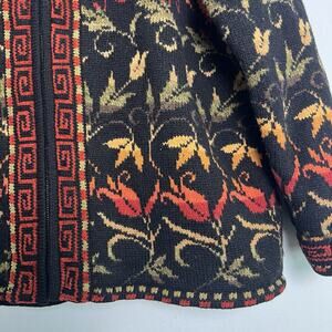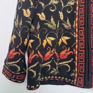 Vtg Nomadic Traders Womens Sz M Floral Sweater Cardigan Lambs Wool Blend Fall Zip