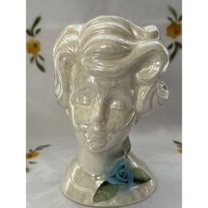 Vintage Norcrest Lustreware Lady Head Vase, BR-17, Blue Flower