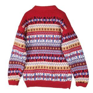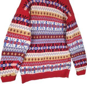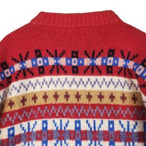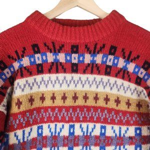 Vintage Nordic Tunic Sweater Women's Medium Red Wool Fair Isle Handmade Christma