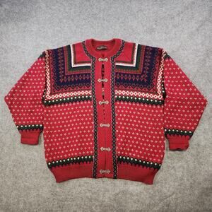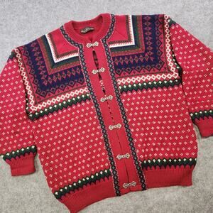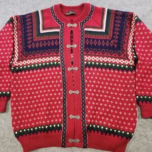 Vintage Nordstrikk Sweater Adult XL Red Nordic Wool Knit Cardigan Clasp 90s