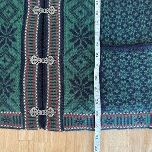 Nordic fair isle wool cardigan vintage oversized green navy Scandinavian knit jacket