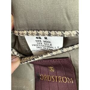 Nordstrom 46R Wool Silk Blazer Cream Houndstooth 2 Button Sport Coat