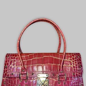 Vintage Nordstrom Croc-Embossed Genuine Leather Satchel Tote – Red