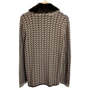 Vintage Nordstrom Faux Fur Collar Cardigan Brown XL Old Money Mobwife