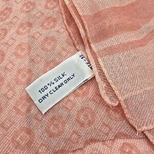 Vintage Nordstrom Italian Silk Scarf With Peach Floral Geometric Pattern jj3788