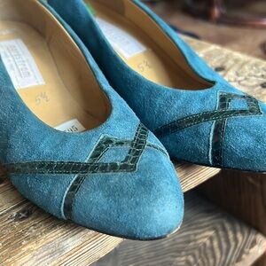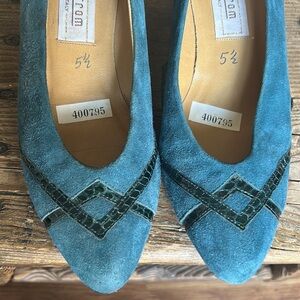 Vintage Nordstrom Made in Italy Blue Suede Pumps with Geometric Design Women 5.5