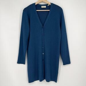 Vintage Nordstrom Preview Merino Wool Cardigan Duster Sweater Small Blue V Neck