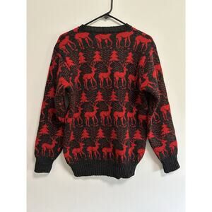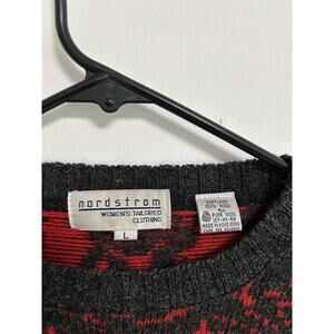 Vintage Nordstrom Reindeer Sweater Shetland Wool Red Gray Retro Grandpa Tree Christmas Holiday Fair Isle
