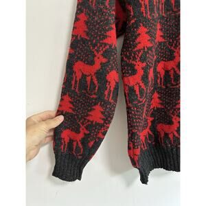 Vintage Nordstrom Reindeer Sweater Shetland Wool Red Gray Retro Grandpa Tree