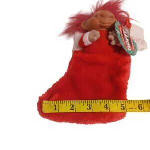 Vintage Norfin Christmas Troll In Plush Stocking Y1255 Red Hair 7.5-Inches. Condition is new. A quirky gift or collectible for troll fans. (FC04)