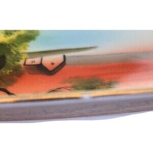 Vintage Noritake Celery Dish Lake Sunset Cottage Scene Hand Painted 12" Gold Rim