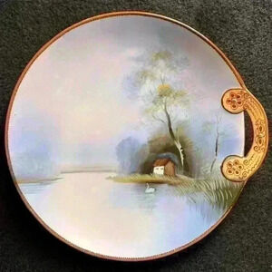 Vintage Noritake Decorative Plates- Pond Scene with Swans- Set of Two