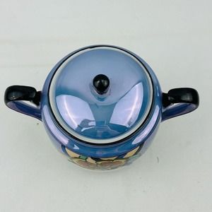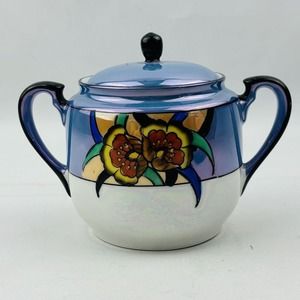 Vintage Noritake Floral Sugar Bowl Blue Lusterware Handpainted Morimura M Japan
