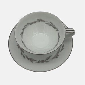 Vintage Noritake Graywood Round Flat Cup & Saucer Platinum Trim 6041 Japan 2"