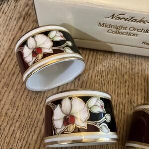 Vintage Noritake Ivory China MIDNIGHT ORCHID Collection NAPKIN RINGS Set NEW