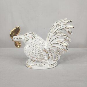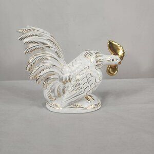 Vintage Noritake Japan Ceramic Gold Trimmed Rooster White Glazed Decor Farm
