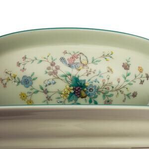 DESCRIPTION: Noritake Paradise Green (8223 W80, produced from 1974–1985, features a pale green body with multicolor floral pattern and green trim.