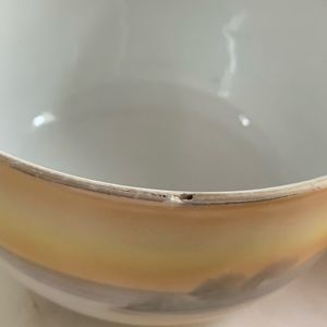 There is a very small chip on the rim that appears to be from a manufacturing bubble that popped โ it is painted over, indicating it may have occurred during production. Other than this, the piece is in good vintage condition with no cracks or repairs.